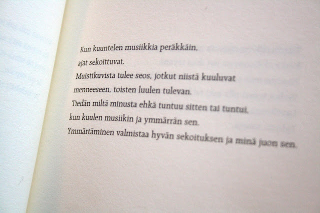 Mua vähän kauhistuttaa, että ehdin jo viikossa ikävöidä koululle ja enää puoli vuotta on jäljellä ja sitten sieltä pitää lähteä kokonaan pois. Apua. Aiheutin itselleni myös ahdistusta vierailemalla yhtenä päivänä jo vähän liiankin tutuksi käyneillä korkeakoulujen nettisivuilla. Kohta on taas kevät, kohta pitää taas hakea, mutta minne ja mitä ja häh. Yritän nyt kuitenkin elää ja olla ja hengittää tässä hetkessä enkä miettiä tulevaisuutta. Tai no, miettiä toki saa kunhan ei ahdistu ja stressaa liikaa.